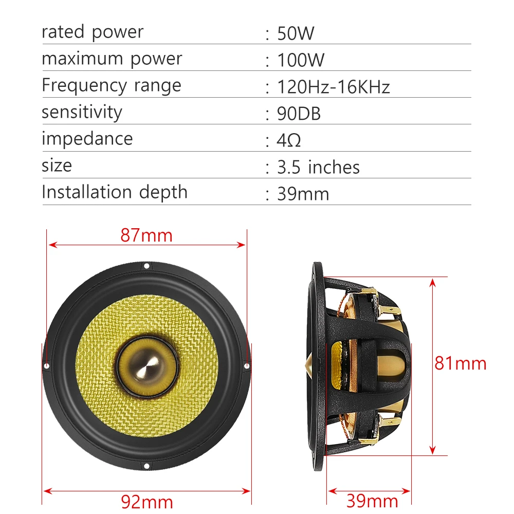 3.5 inches bullet guided mid-range speakers, car center speakers, luxury car two-way three-way 3-inch mid-range speakers