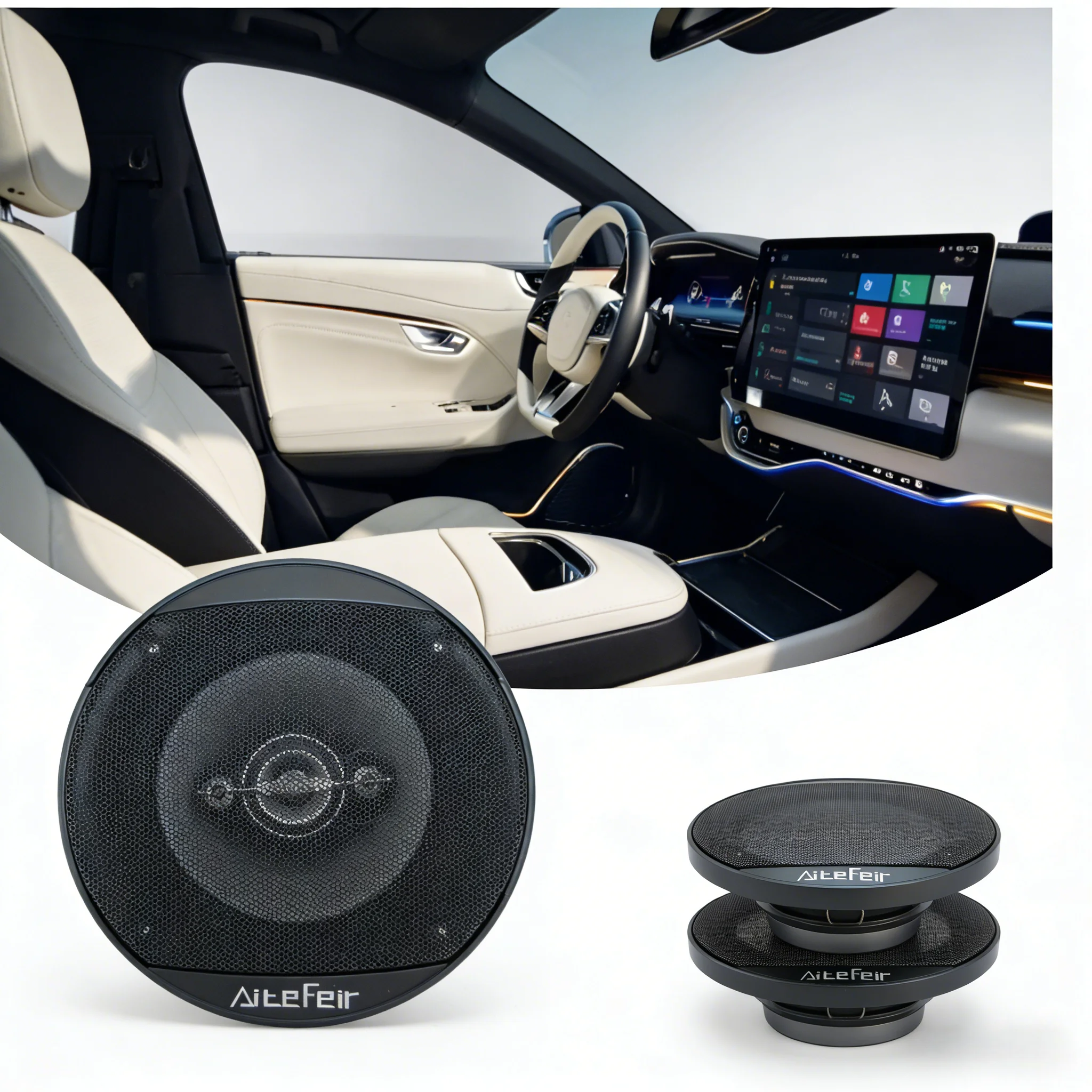Two 5-inch 300W dual-channel car HIFI coaxial speakers, full-range stereo sound, 4.0 surround sound, 36V safe voltage.